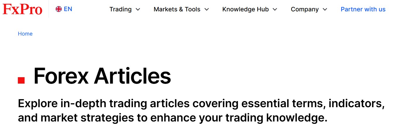 | 📚 Trading Education | Professional free Forex trading online courses, FxPro webinars, Forex glossary, articles, etc. |